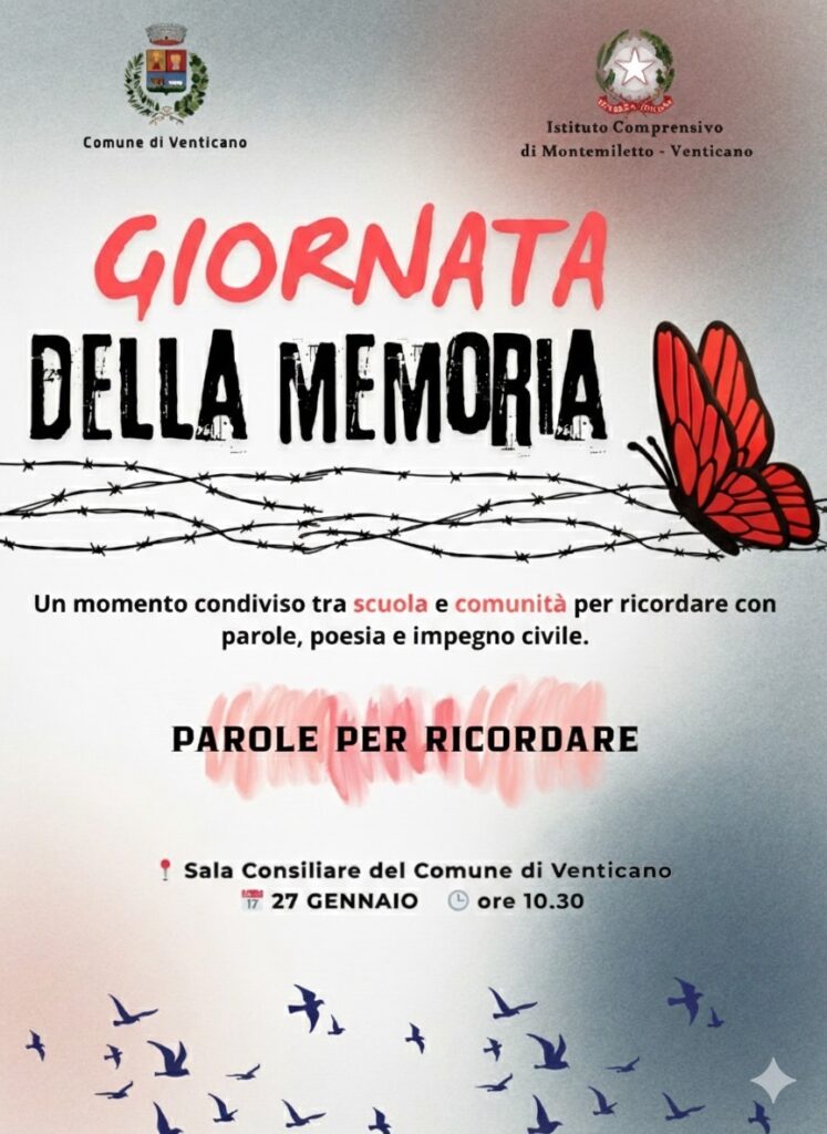 L’incontro si terrà il 27 gennaio alle ore 10.30, presso la Sala Consiliare del Comune di Venticano. Sarà un’occasione significativa di ascolto e partecipazione, arricchita dalla testimonianza di una docente che ha visitato il campo di concentramento di Auschwitz, offrendo un racconto diretto e toccante.