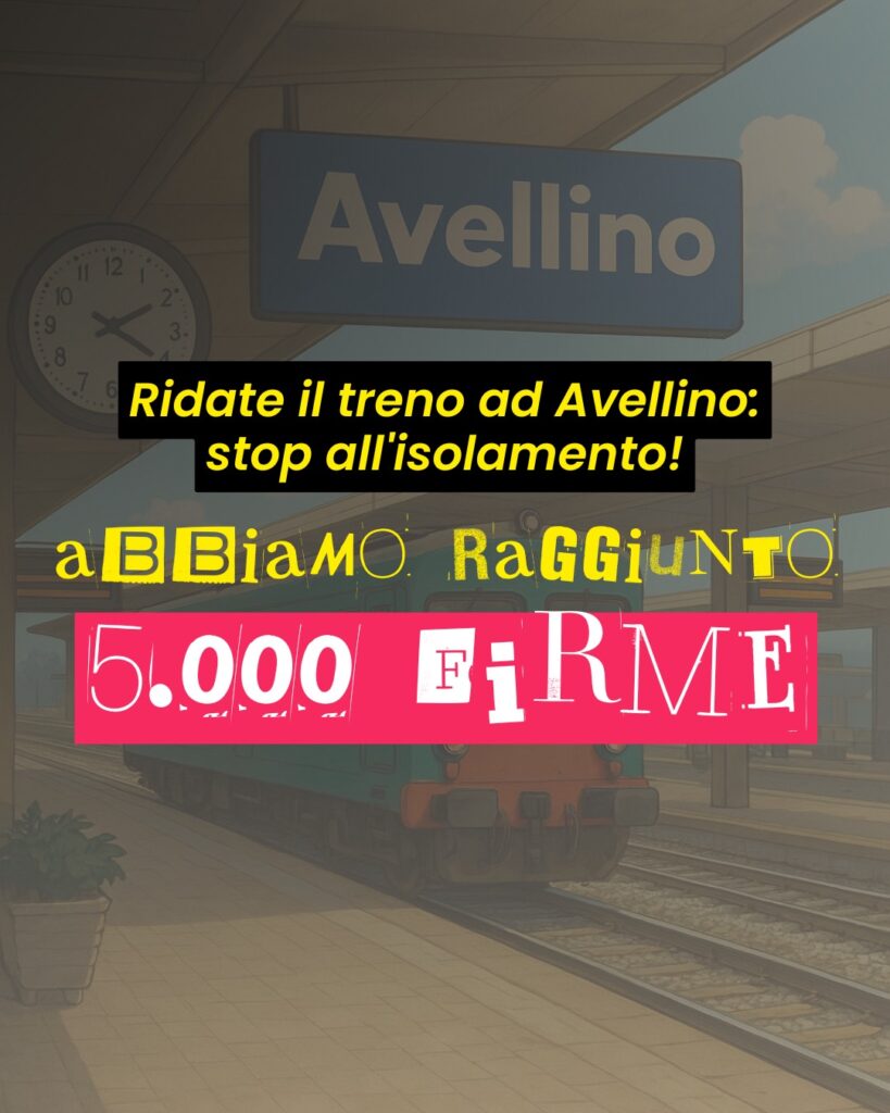La petizione “Ridateci il treno: stop all’isolamento di Avellino” ha superato le 5.000 firme, confermando l’ampio sostegno civico a una richiesta chiara e condivisa: la riattivazione della stazione di Avellino e il rilancio dei collegamenti ferroviari dell’Irpinia.