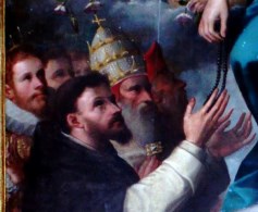 “L’enigma era posto da una cattiva interpretazione di quei segni ancora visibili, nonostante il tentativo di occultamento subito dagli abitanti di S. Paolina dell’epoca. Inoltre, quarant’anni fa il Parroco Michele Musto fece quello che poteva, con gli strumenti che aveva, e trascrisse nel suo libro che: “l’autore era quasi illeggibile”; ma con un po’ di impegno riuscì ad isolare alcune parti corrette. “Era un genio” Michele Musto, e trascrisse nel suo libro a pag. 36 – Io Ant (Xr Ardefus Neap A.D. 1608 Pinxit). Oggi in quella ricerca mi sono cimentato anch’io e, desidero rispondere di questo ai cittadini di Santa Paolina. Così, da un’attenta lettura di alcune foto ad alta risoluzione si riesce a decifrare: “IO: ANT: ARDIT … NEAPOLIS” e poi in un’altra linea “ANNO DNI. 1608” Questa vicenda assume una miriade di implicazioni. In sintesi si tratta di “Iohannes Antonii Arditi de’Vercelli”. – Ecco spiegato il motivo dei lineamenti olandesi, ma di scuola napoletana. Giovanni Antonio Arditi da Vercelli stabilì una scuola pittorica a Napoli e, tra le sue opere veramente caratteristiche e di grande valore artistico, troviamo, la Cappella d’Avalos nella Chiesa di Sant’Anna dei Lombardi che, si trova a Napoli, in piazza Monteoliveto. Questo mastro d’arte dipinse con Antonio Sarnelli, Fabrizio Santafede e Carlo Sellitto nel 1606. Nel nostro dipinto del 1608 invece risultano raffigurati nella visione estemporanea e surreale della Beata Vergine del Rosario, i seguenti personaggi: San Domenico, il Pontefice Sisto V (Felice di Peretto che, nacque il 13 dicembre 1521 nelle Marche) che ebbe il titolo di S. Girolamo degli Illirici; poi alle spalle di queste due figure spunta il committente, ovvero Carlo Gesualdo, Principe di Venosa e Duca di Conza, che stando alle ricerche di Erasmo Ricca era feudatario di Santa Paolina, ma anche di Montefusco dai tempi di Fabrizio II Gesualdo e Geronima Borromeo”.