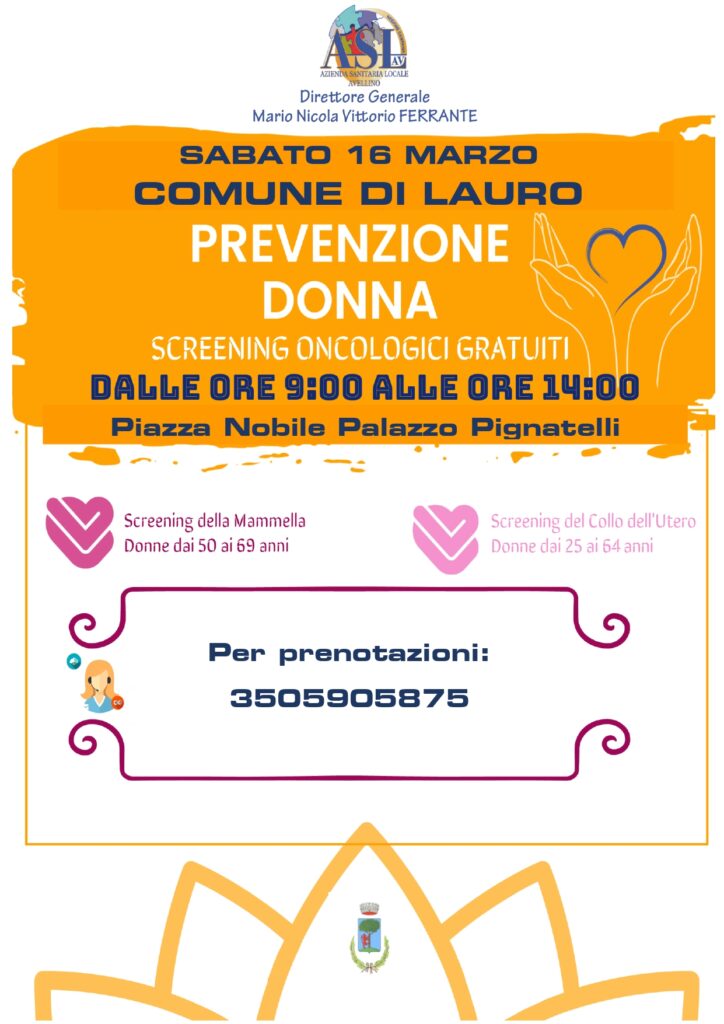 Sabato 16 marzo, in collaborazione con il Comune di Lauro e con l’Assessorato alle Politiche sociali, i Camper dell’ASL faranno tappa in Piazza Nobile presso Palazzo Pignatelli dalle ore 9.00 alle ore 14.00.