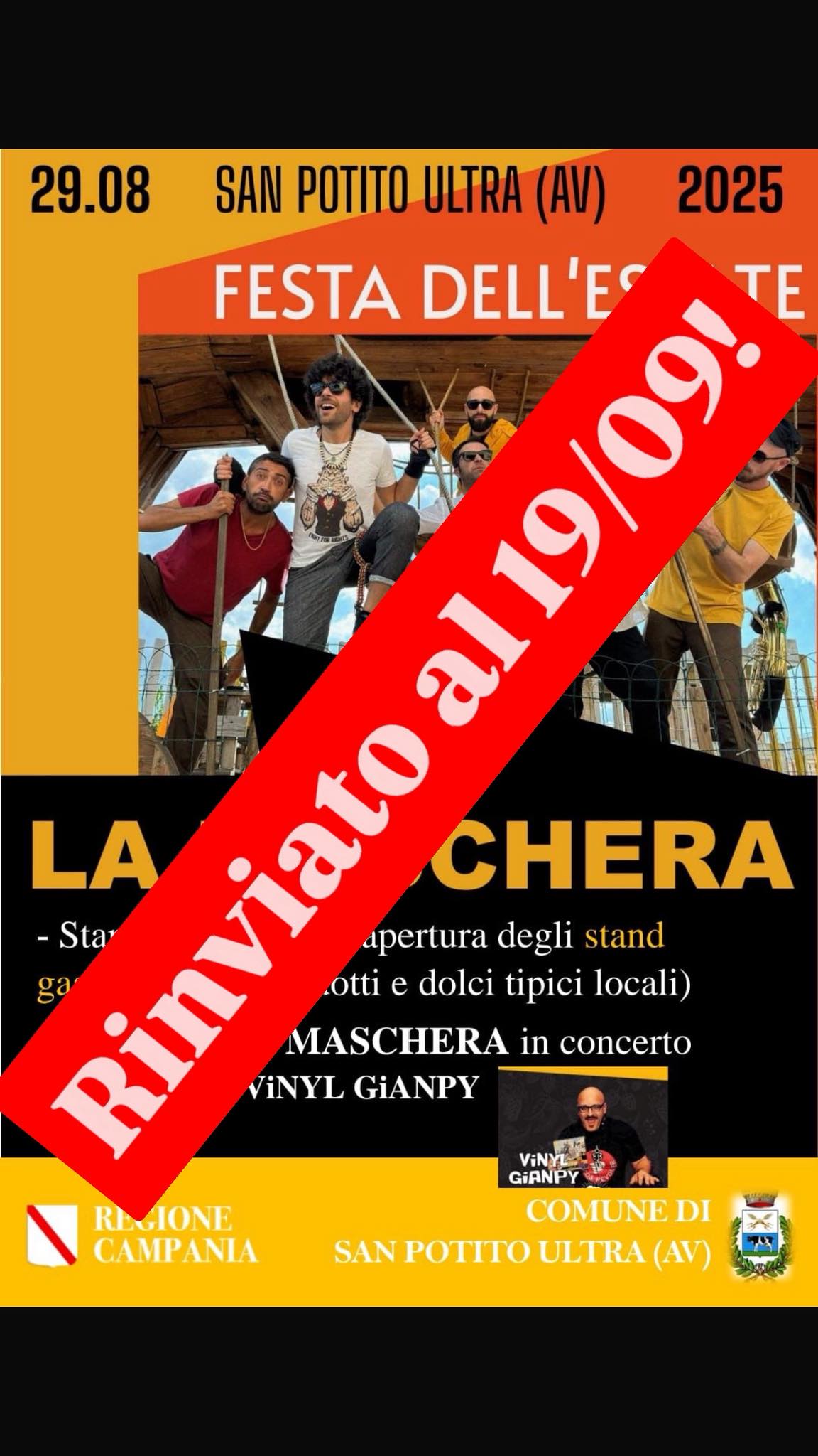 San Potito Ultra: il concerto de “La Maschera” rinviato al 19 settembre