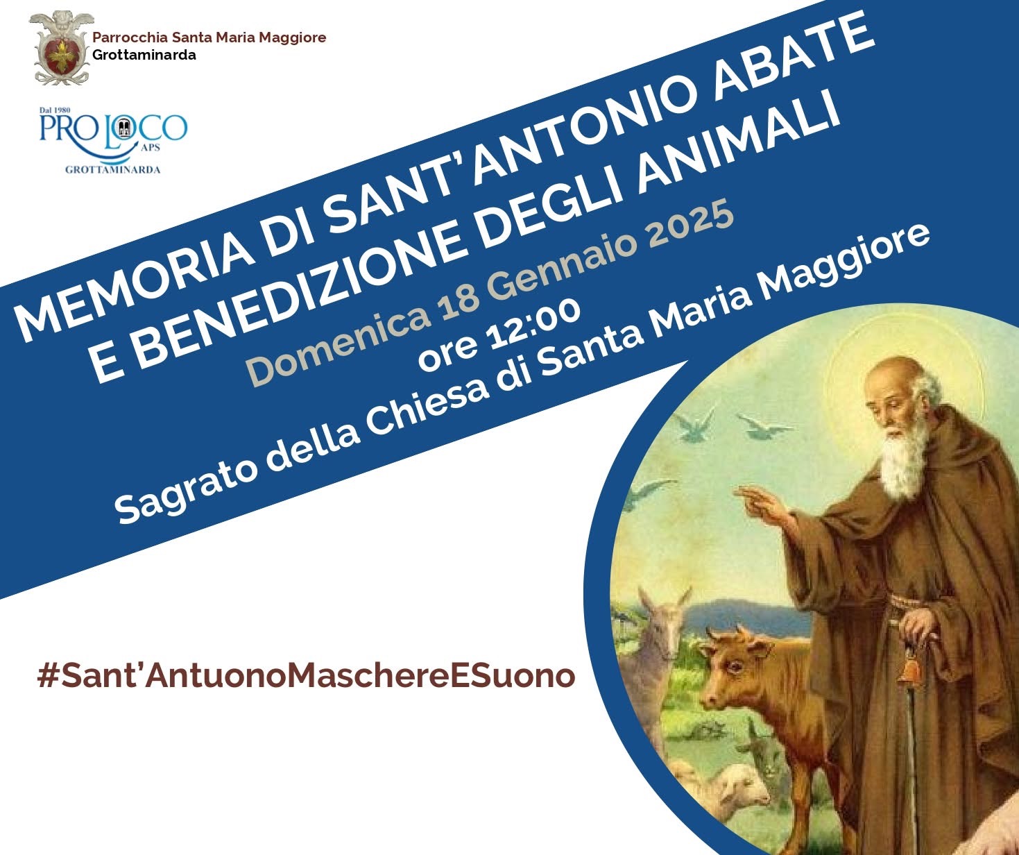 Domenica 18 gennaio, alle ore 12:00, sul Sagrato della Chiesa di Santa Maria Maggiore, avrà luogo una nuova edizione della tradizionale Benedizione degli Animali, celebrata in occasione della festività di Sant’Antonio Abate, da sempre riconosciuto come protettore degli animali.