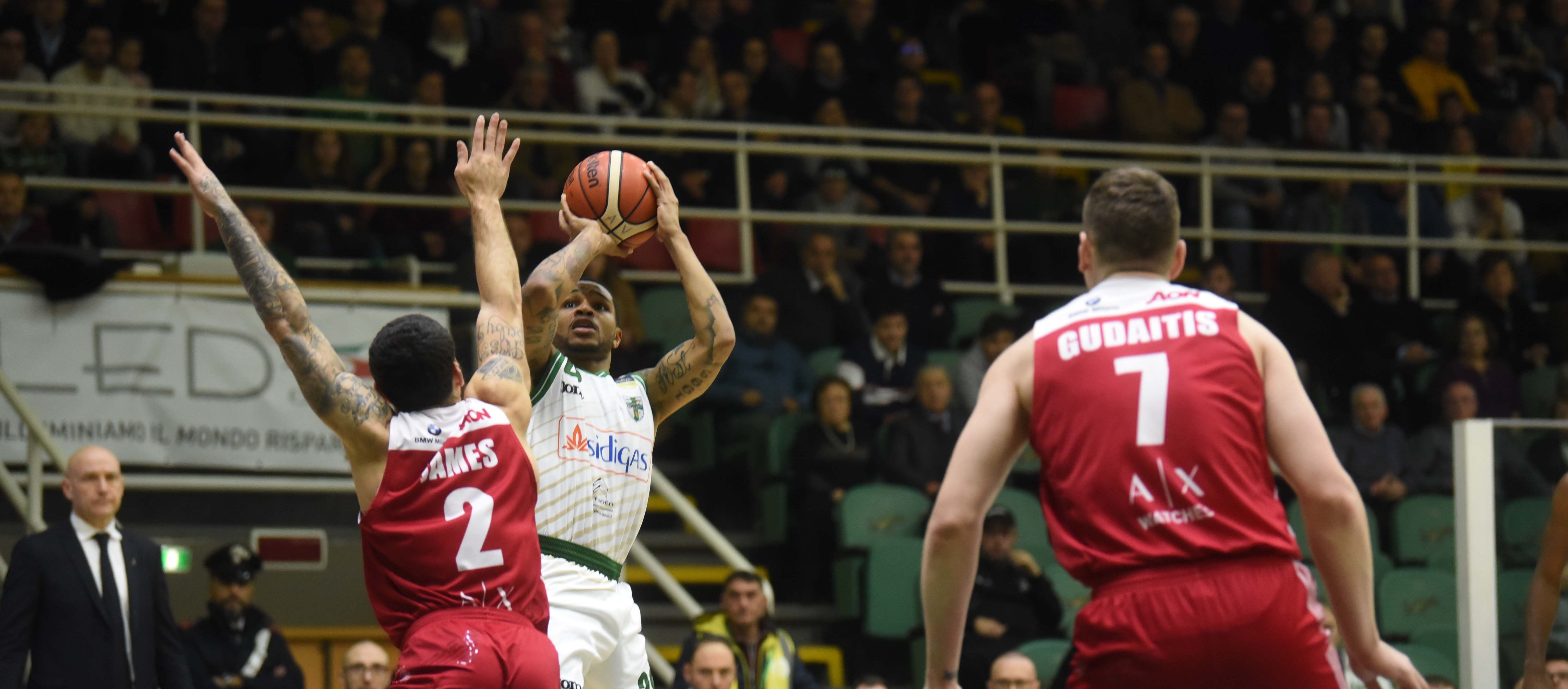 Ultimo quarto 22-23 Milano riprende a martellare la retina con Micov, Jerrells imita il compagno e si va a colloquio da coach Vucinic (63-62). In uscita subito tripla di Filloy, seguito dai 2 di Gudaitis. James e Nichols ribattono a tono e la gara prosegue sui binari dell’equilibrio. Tocca a Gudaitis, dai 5.75, siglare il sorpasso (68-69). La Sidigas risale la china in lunetta con Young e Sykes e con la tripla di Green: +4 a 3′ dalla sirena. James non ci sta, mentre Fontecchio (quinto fallo) deve lasciare i legni. Young prova a metterci la zampata, ma c’è da soffrire a causa dei soliti James e Gudaitis. Tanti errori nei secondi finali, ma il canestro decisivo è quello di Green e vale i 2 punti e la prima sconfitta in campionato dell’Armani. Finisce 85-81.