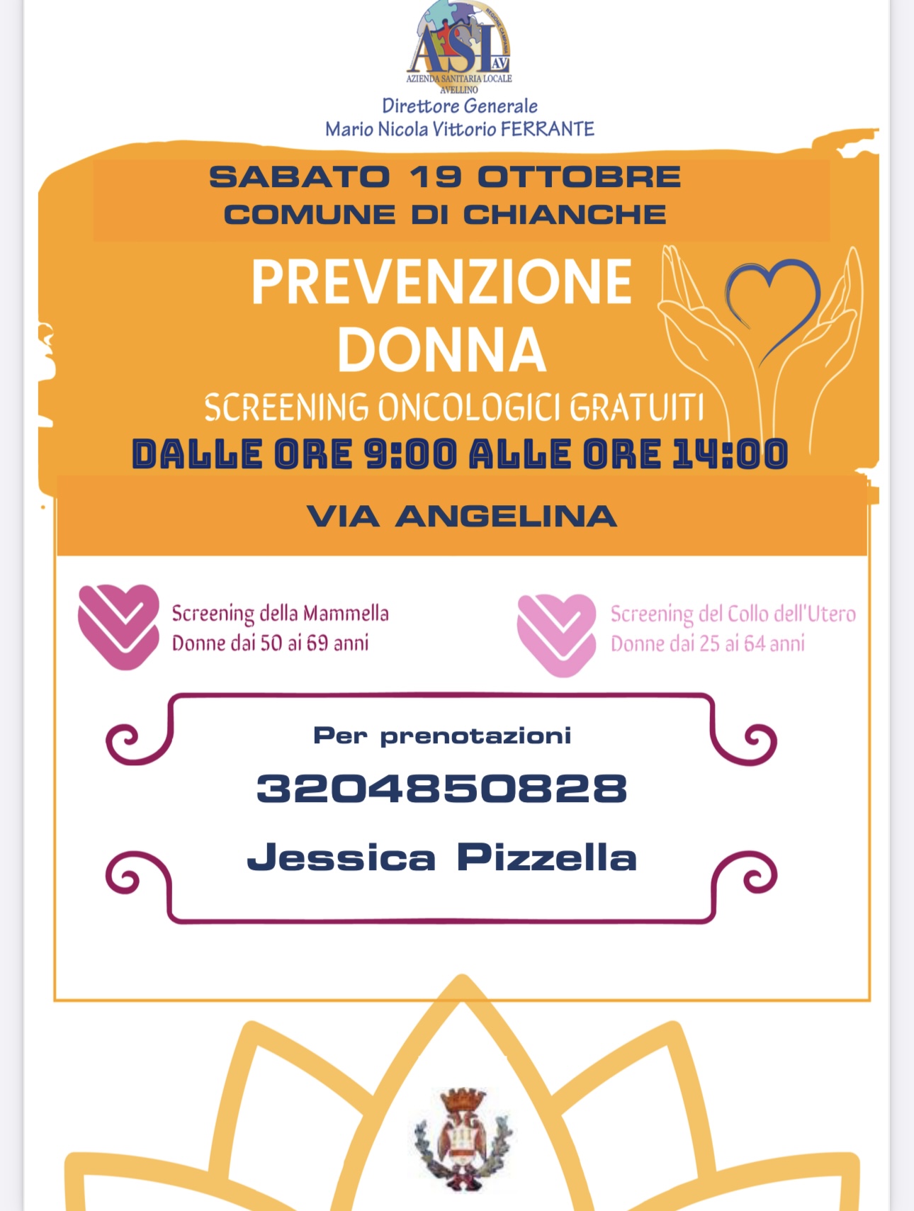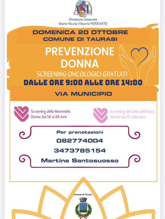 Per le donne dai 50 ai 69 anni, residenti in provincia di Avellino, sarà possibile aderire allo screening della mammella,con l’esecuzione gratuita della mammografia, e per le donne dai 25 ai 64 anni, residenti in provincia di Avellino, sarà possibile aderire allo screening del collo dell’utero con l’esecuzione del Pap test.