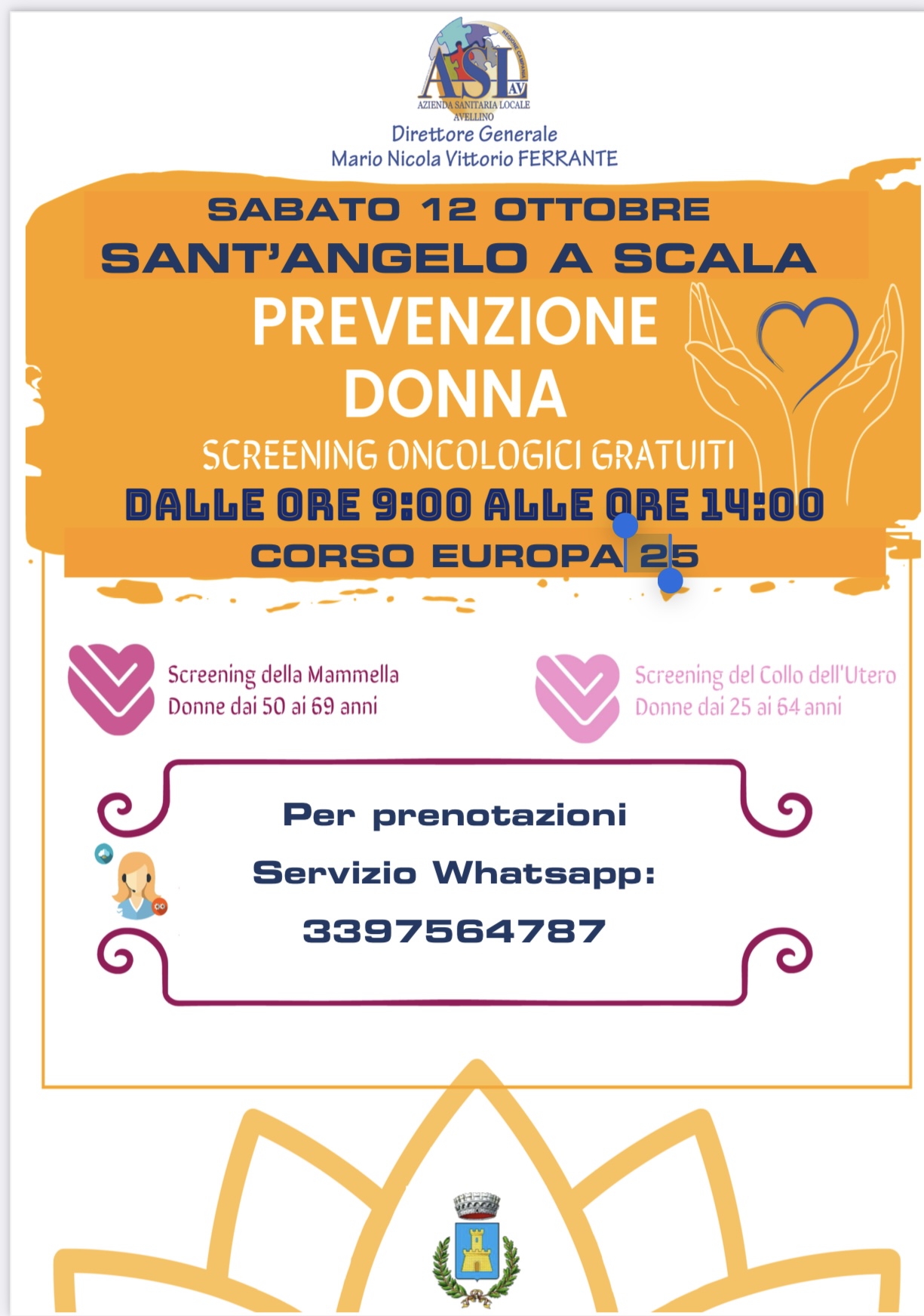 Sabato 12 ottobre, in collaborazione con il Comune di Sant’Angelo a Scala, i Camper dell’ASL faranno tappa in Corso Europa 25 dalle ore 9.00 alle ore 14.00.