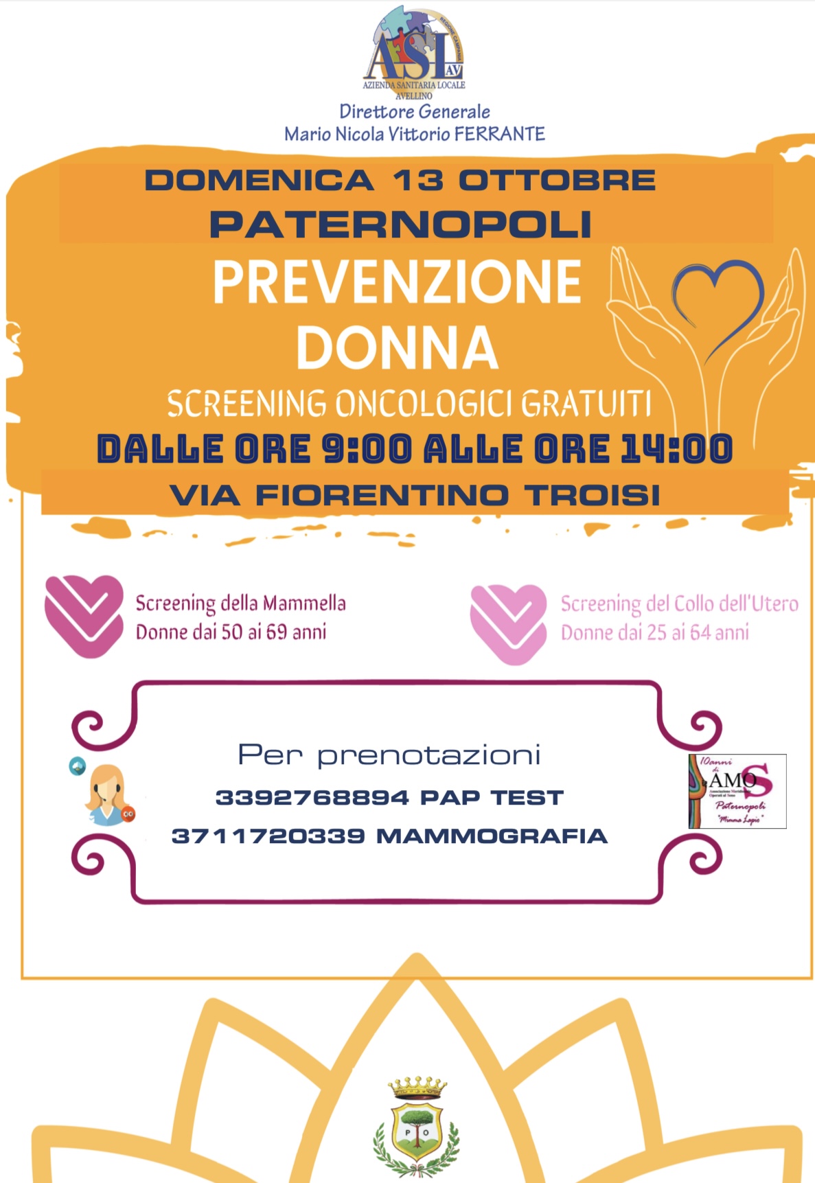 Per le donne dai 50 ai 69 anni, residenti in provincia di Avellino, sarà possibile aderire allo screening della mammella, con l’esecuzione gratuita della mammografia, e per le donne dai 25 ai 64 anni, residenti in provincia di Avellino, sarà possibile aderire allo screening del collo dell’utero con l’esecuzione del Pap test.