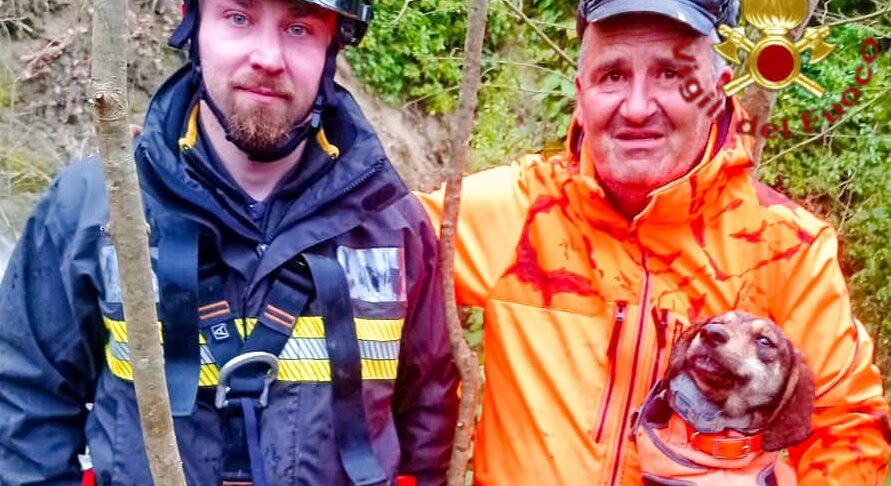 Segugio cade in un dirupo durante una battuta di caccia, salvato