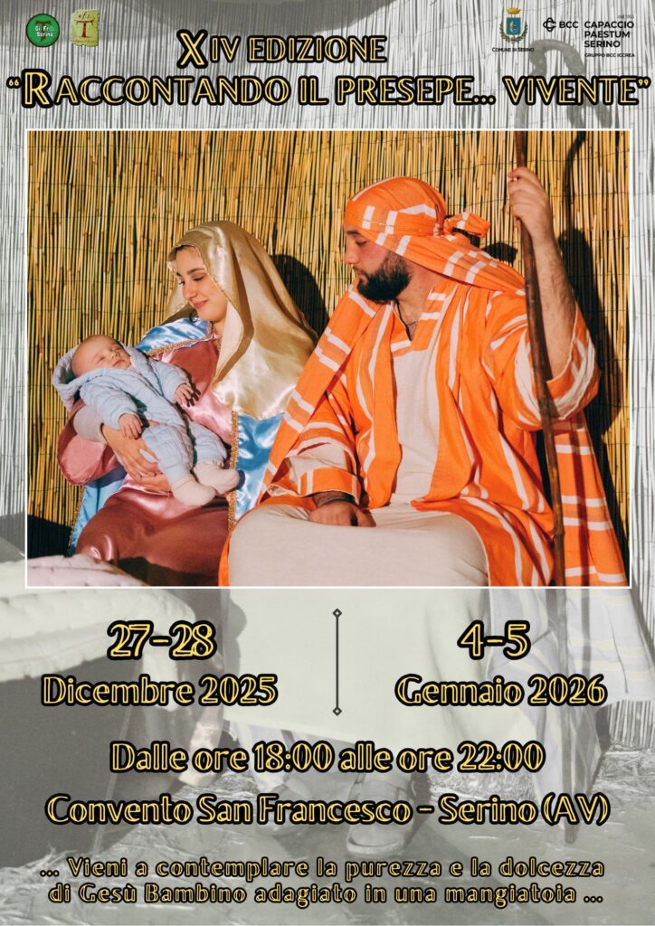 La magia del Natale torna ad avvolgere il Convento Francescano di Serino con la XIV edizione di “Raccontando il Presepe… Vivente”, l’evento che da quattordici anni racconta la Natività attraverso un percorso immersivo, ricco di tradizione e suggestioni. L’iniziativa, organizzata dalla Famiglia Francescana di Serino, gode del patrocinio del Comune di Serino e della BCC Caracciolo Paestum Serino, confermandosi una delle manifestazioni natalizie più attese della Valle del Sabato.