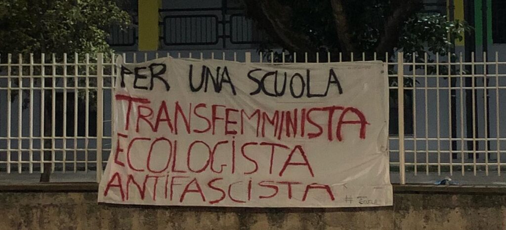 Ieri tappa di avvicinamento alla manifestazione del 19. Due striscioni sono stati affissi davanti al liceo Classico Colletta e all’istituto tecnico per Geometri. Gli slogan, sul primo: “La scuola agli studenti, la città ai giovani”, sul secondo: “Vogliamo una scuola transfemminista, ecologista e antifascista”.