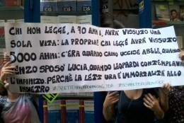 La cultura non si tocca. Un piccolo sit-in davanti le porte della libreria Guida di Port’Alba a Napoli è stato organizzato da un gruppo studentesse del liceo classico F. De Sanctis di Sant’Angelo dei Lombardi. Urlando slogan inneggianti alla cultura e protestando contro la chiusura di Guida, le giovani liceali esponevano anche un cartello con scritto una frase di Umberto Eco: «Chi non legge, a 70 anni, avrà vissuto una sola vita: la propria! Chi legge avrà vissuto 5000 anni: c’era quando Caino uccise Abele, quando Renzo sposò Lucia, quando Leopardi contemplava l’infinito, perché la lettura è immortalità allo indietro». Dopo essere andate a scuola stamattina e di essere giunte a Port’Alba solo nel pomeriggio si chiedevano incredule, «dove sono i movimenti studenteschi? Ci aspettavamo di trovare altre persone in protesta e qualche rappresentante dell’Uds. Evidentemente non interessa, un luogo sacro della nostra cultura va via per sempre e nessuno si mobilita».