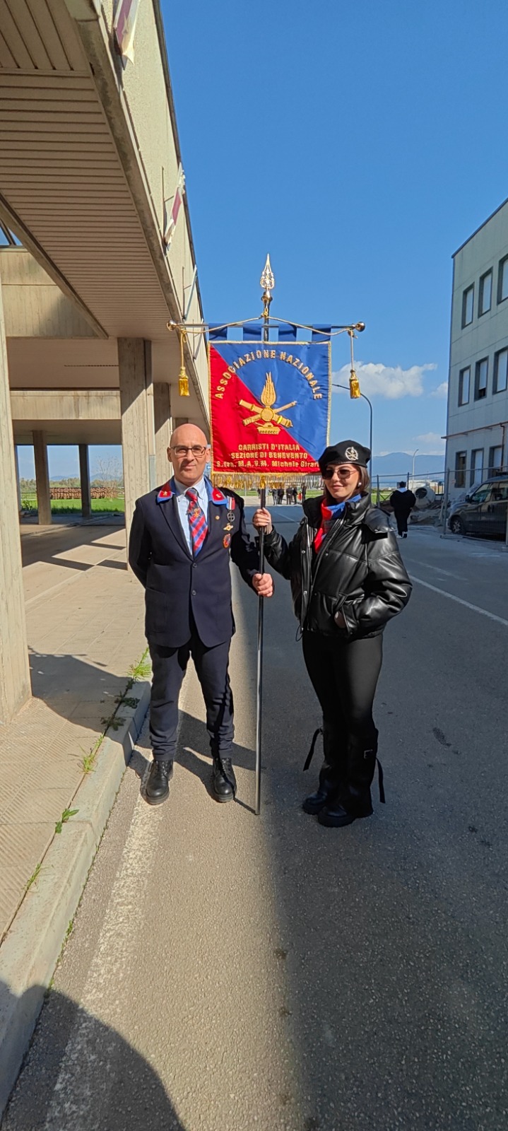 Accompagnati dal professore Pierluigi Marzullo Alfiere e Vicepresidente dell’associazione Nazionale Carristi d’Italia sez. di Benevento ha preso parte alla Cerimonia solenne l’alunna Giorgia Barrasso che ha affiancato il Labaro della sezione.