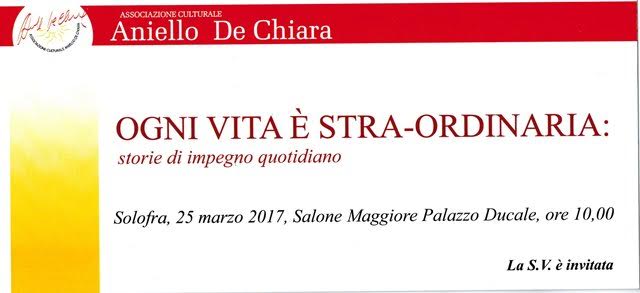 Non di eroi né di parole abbiamo bisogno, ma di coraggio, sogni e buona volontà. “Ogni vita è stra-ordinaria: storie di impegno quotidiano” – Solofra, 25 marzo 2017, Salone Maggiore Palazzo Ducale