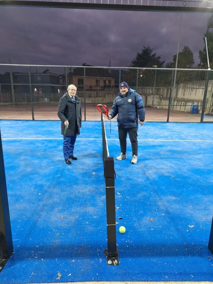 SOLOFRA: A testare il campo di “padel” che e’ stato realizzato a  Sant’ Agata Irpina dall’Associazione “Gioventù Solofra”, che ha aggiunto anche il nuovo campo al centro sportivo di via Cortine e’ arrivato il sindaco della cittadina conciaria Nicola Moretti. Per lui solo una prova tecnica, visto che non era sicuramente in tuta, come si vede anche dalle foto. Una prova generale, quella insieme a  Nicola Rizzo Presidente dell’Associazione che ha voluto questo sport sempre piu’ in crescita anche per la struttura sportiva di Sant’Agata.