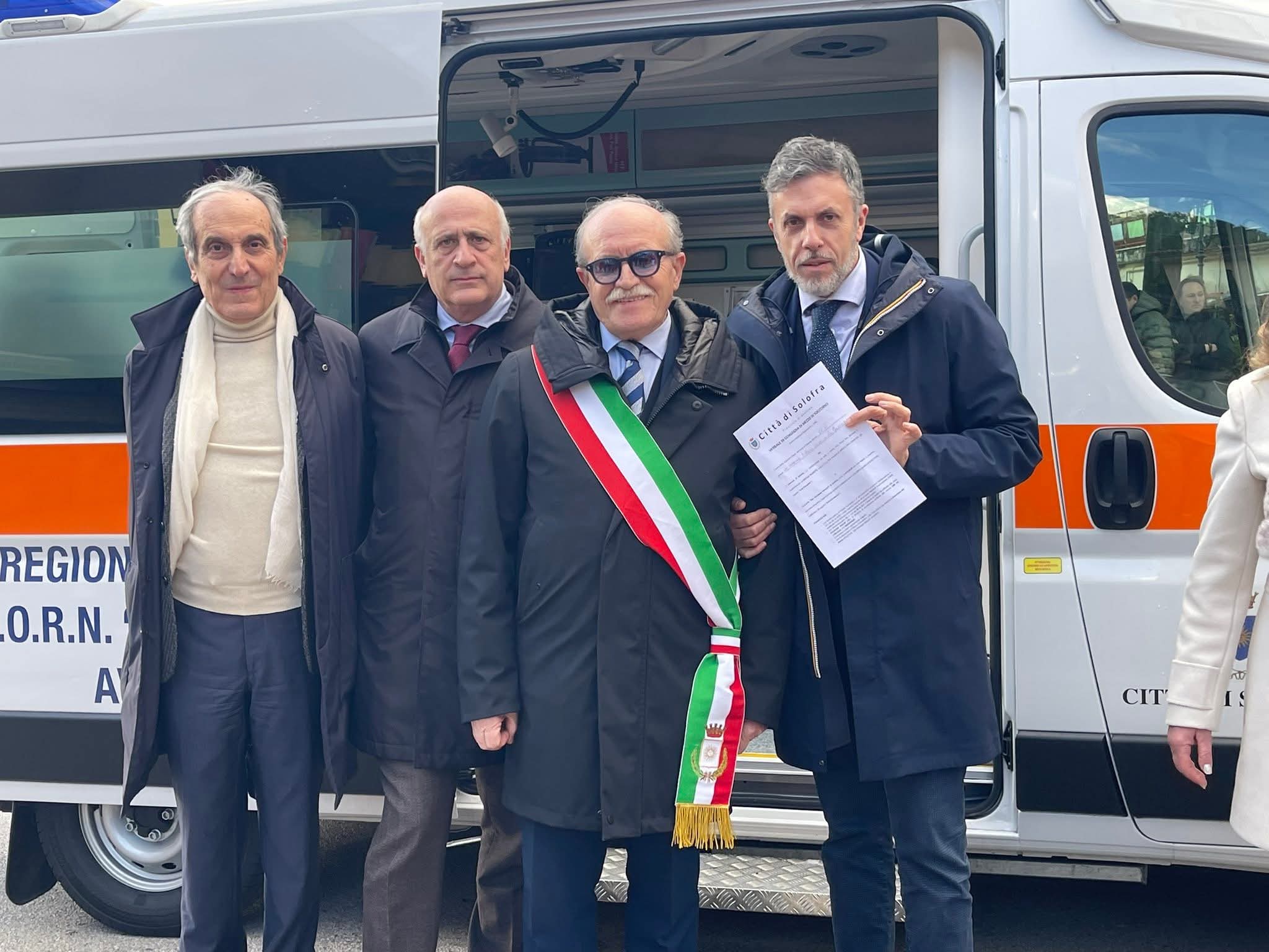 Il mezzo di soccorso arriva grazie alla solidarietà concreta dei cittadini di Solofra, che durante il periodo dell’emergenza Covid hanno contribuito, attraverso una raccolta fondi, all’acquisto del mezzo, completo di tutte le dotazioni necessarie, comprese le apparecchiature per la rianimazione..La donazione è stata ufficializzata nel corso della manifestazione che si è svolta oggi nella frazione di Sant’Agata, preceduta dalla benedizione del veicolo da parte del parroco 𝗱𝗼𝗻 𝗩𝗶𝗿𝗴𝗶𝗹𝗶𝗼 𝗗’𝗔𝗻𝗴𝗲𝗹𝗼, alla presenza delle istituzioni locali, del sindaco 𝗡𝗶𝗰𝗼𝗹𝗮 𝗠𝗼𝗿𝗲𝘁𝘁𝗶 e del Direttore Generale dell’Azienda Moscati, 𝗚𝗲𝗿𝗺𝗮𝗻𝗼 𝗣𝗲𝗿𝗶𝘁𝗼, affiancato dal Direttore Sanitario, 𝗔𝗿𝗶𝘀𝘁𝗶𝗱𝗲 𝗧𝗼𝗿𝘁𝗼𝗿𝗮. Nel suo intervento, il manager ha voluto esprimere un sentito ringraziamento alla comunità solofrana: «𝘘𝘶𝘦𝘴𝘵𝘢 𝘢𝘮𝘣𝘶𝘭𝘢𝘯𝘻𝘢 𝘳𝘢𝘤𝘤𝘰𝘯𝘵𝘢 𝘶𝘯𝘢 𝘴𝘵𝘰𝘳𝘪𝘢 𝘥𝘪 𝘳𝘦𝘴𝘱𝘰𝘯𝘴𝘢𝘣𝘪𝘭𝘪𝘵𝘢̀ 𝘤𝘰𝘯𝘥𝘪𝘷𝘪𝘴𝘢 𝘦 𝘥𝘪 𝘧𝘪𝘥𝘶𝘤𝘪𝘢 𝘯𝘦𝘭𝘭𝘦 𝘪𝘴𝘵𝘪𝘵𝘶𝘻𝘪𝘰𝘯𝘪. È 𝘪𝘭 𝘴𝘦𝘨𝘯𝘰 𝘥𝘪 𝘶𝘯 𝘭𝘦𝘨𝘢𝘮𝘦 𝘧𝘰𝘳𝘵𝘦 𝘵𝘳𝘢 𝘭𝘢 𝘤𝘰𝘮𝘶𝘯𝘪𝘵𝘢̀ 𝘴𝘰𝘭𝘰𝘧𝘳𝘢𝘯𝘢 𝘦 𝘪𝘭 𝘴𝘶𝘰 𝘱𝘳𝘦𝘴𝘪𝘥𝘪𝘰 𝘰𝘴𝘱𝘦𝘥𝘢𝘭𝘪𝘦𝘳𝘰, 𝘤𝘩𝘦 𝘧𝘢 𝘱𝘪𝘦𝘯𝘢𝘮𝘦𝘯𝘵𝘦 𝘱𝘢𝘳𝘵𝘦 𝘥𝘦𝘭𝘭𝘢 𝘴𝘵𝘦𝘴𝘴𝘢 𝘈𝘻𝘪𝘦𝘯𝘥𝘢. 𝘜𝘯 𝘭𝘦𝘨𝘢𝘮𝘦 𝘤𝘩𝘦 𝘳𝘢𝘧𝘧𝘰𝘳𝘻𝘢 𝘭𝘢 𝘤𝘰𝘯𝘴𝘢𝘱𝘦𝘷𝘰𝘭𝘦𝘻𝘻𝘢 𝘥𝘪 𝘢𝘱𝘱𝘢𝘳𝘵𝘦𝘯𝘦𝘳𝘦 𝘢 𝘶𝘯’𝘶𝘯𝘪𝘤𝘢 𝘳𝘦𝘢𝘭𝘵𝘢̀ 𝘴𝘢𝘯𝘪𝘵𝘢𝘳𝘪𝘢, 𝘪𝘯𝘵𝘦𝘨𝘳𝘢𝘵𝘢 𝘦 𝘤𝘰𝘮𝘱𝘭𝘦𝘮𝘦𝘯𝘵𝘢𝘳𝘦, 𝘦 𝘤𝘩𝘦 𝘰𝘨𝘨𝘪 𝘴𝘪 𝘵𝘳𝘢𝘥𝘶𝘤𝘦 𝘪𝘯 𝘮𝘢𝘨𝘨𝘪𝘰𝘳𝘦 𝘤𝘢𝘱𝘢𝘤𝘪𝘵𝘢̀ 𝘥𝘪 𝘳𝘪𝘴𝘱𝘰𝘴𝘵𝘢, 𝘮𝘢𝘨𝘨𝘪𝘰𝘳𝘦 𝘷𝘪𝘤𝘪𝘯𝘢𝘯𝘻𝘢 𝘢𝘪 𝘣𝘪𝘴𝘰𝘨𝘯𝘪 𝘥𝘦𝘭𝘭𝘦 𝘱𝘦𝘳𝘴𝘰𝘯𝘦 𝘦 𝘮𝘢𝘨𝘨𝘪𝘰𝘳𝘦 𝘴𝘪𝘤𝘶𝘳𝘦𝘻𝘻𝘢 𝘱𝘦𝘳 𝘪𝘭 𝘵𝘦𝘳𝘳𝘪𝘵𝘰𝘳𝘪𝘰».