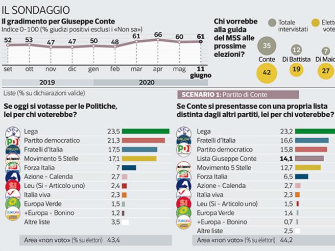 Sondaggi: La Lega cala, gli italiani chiedono a Conte una sua “Scelta Civica”