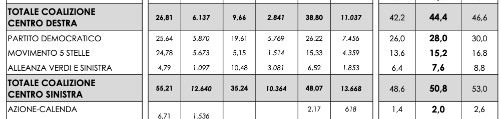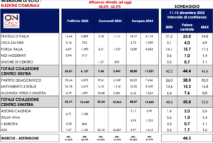 Nello scenario del primo turno, Nicola Giordano, sostenuto dal campo progressista, risulterebbe in testa con il 45,5%. In un eventuale ballottaggio vincerebbe Pionati, mentre in uno scontro diretto tra centrosinistra e centrodestra prevalrebbe nettamente Giordano.