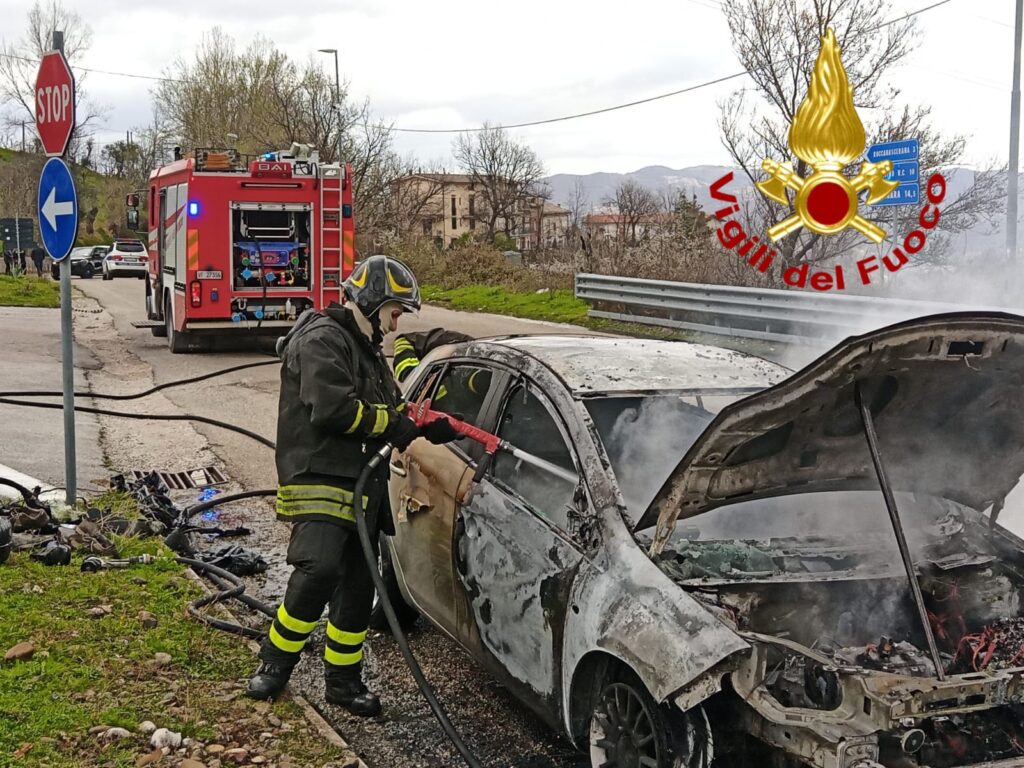 Le fiamme che hanno avvolto il veicolo sono state spente e messo in sicurezza l’area. La donna alla guida, per lo spavento, ha avvertito un malore, ed i Vigili del Fuoco le hanno prestato i primi soccorsi in attesa dell’arrivo dei sanitari del 118.
