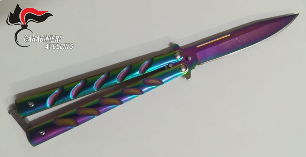 L’arma, un coltello “a farfalla”, della lunghezza di circa 23 centimetri, è stata recuperata e sequestrata.
