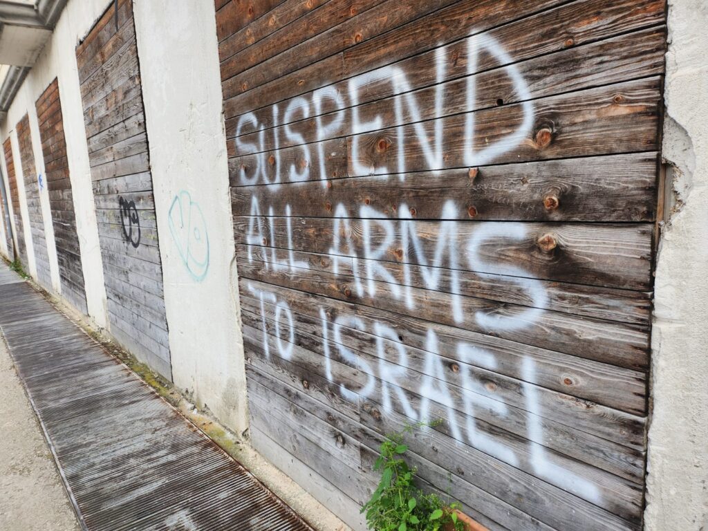 Stop alle armi ad Israele, spuntano scritte anche nella città capoluogo