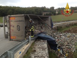 Teora – Nella mattinata di oggi la squadra dei Vigili del Fuoco del distaccamento di Lioni, è intervenuta nel territorio del comune di Teora, sulla strada Statale 7, per un incidente stradale che vedeva coinvolto un autoarticolato che trasportava vetro sacchi di raccolta differenziata. Il mezzo in una curva, per cause ancora in corso di accertamento, si ribaltava. Il conducente è stato soccorso e consegnato alle cure dei sanitari del 118, che ne disponevano il ricovero presso l’ospedale di Sant’Angelo dei Lombardi. Per il recupero del pesante automezzo, si è reso necessario l’intervento dell’autogrù dalla sede centrale di Avellino.