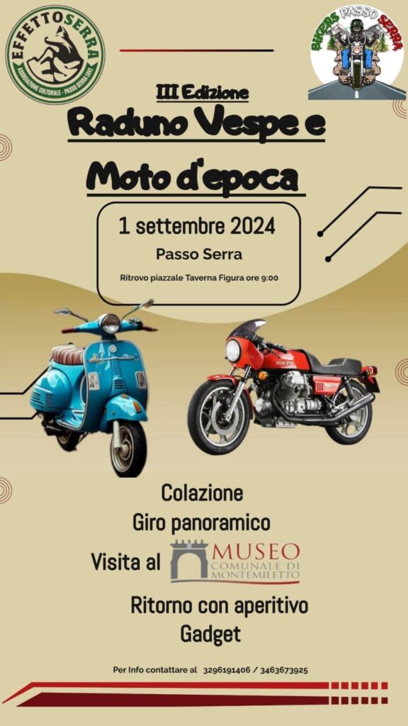 Questa mattina l’appuntamento con il raduno di vespe e moto d’epoca che sfileranno per le vie del paese. Una manifestazione giunta alla sua terza edizione organizzata dall’Associazione Culturale “Effetto Serra”