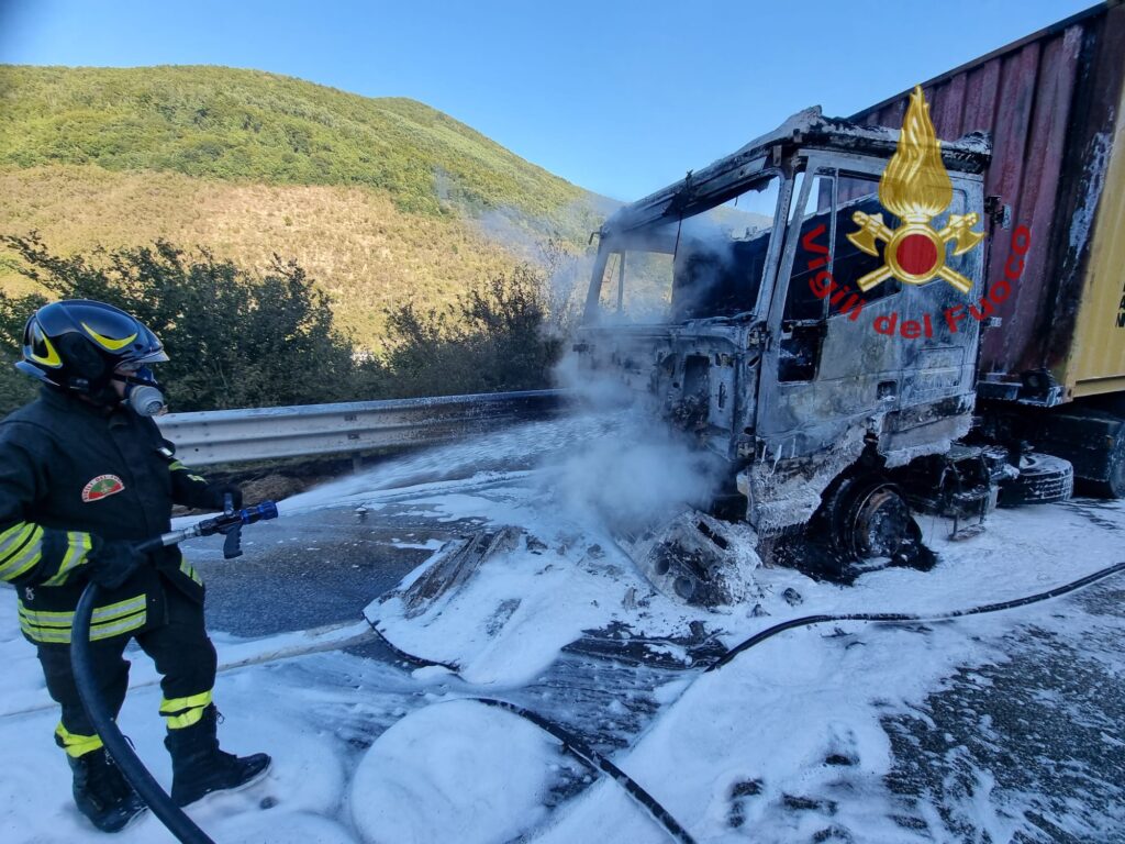 Le fiamme che hanno interessato la cabina del pesante automezzo partito da Bari e diretto a Napoli e che trasportava birra, sono state spente mettendo in sicurezza l’area.