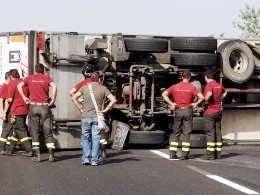 Tir si ribalta: rocambolesco incidente a S. Angelo d.L.