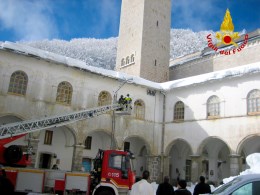 Troppa neve sul tetto del Santuario, l’Abate chiama VdF