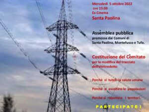 I sindaci di Santa Paolina Rino Ricciardelli, di Tufo Nunzio Donnarumma e di Montefusco Gaetano Zaccaria sono contro l’elettrodotto Montecorvino così come è stato progettato, non si oppongono all’opera in se stessa. Domani, mercoledì 5 ottobre, alle ore 19.00, si svolgerà presso la sala ex Cinema di Santa Paolina, un’assemblea pubblica al fine di dare vita a un comitato che sostenga tale battaglia.