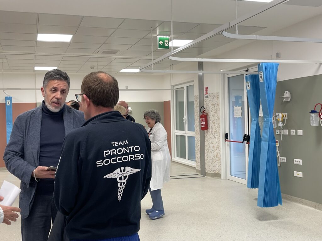 Nella nuova ala del Pronto soccorso troveranno posto: sala trattamento e visita, zona dedicata ai pazienti in attesa di ricovero, stanza per pazienti fragili, stanza per detenuti, ambiente riservato alle vittime di violenza, area per pazienti con patologie infettive e area Obi – Osservazione Breve Intensiva, fondamentale per la gestione dei casi che richiedono monitoraggio clinico prolungato.