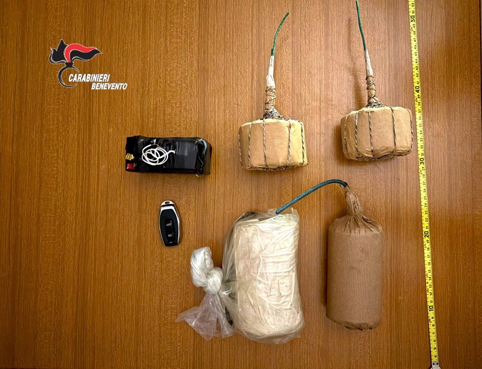 I militari della Compagnia Carabinieri di Cerreto Sannita (BN) hanno tratto in arresto un uomo della valle telesina per possesso di ordigni esplosivi di alto potenziale. Gli investigatori hanno effettuato una serie di perquisizioni – d’iniziativa – presso più obiettivi e giunti in un garage di una di esse hanno individuato un baule al cui interno vi erano 4 manufatti con miccia, un dispositivo elettronico ed un telecomando, tutto in ottimo stato di conservazione.