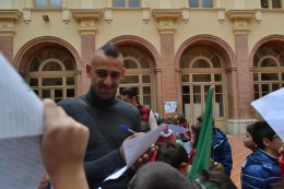 Euforia contagiosa questa mattina presso la scuola primaria-parificata-paritaria Maria SS. di Montevergine – Suore Benedettine di Montevergine di Mercogliano, dove i calciatori dell’Avellino si sono recati nell’ambito del primo appuntamento con “Un giorno per la nostra città” promosso dalla Lega Serie B. Folta la delegazione di calciatori biancoverdi (composta da Soumarè, Arrighini, Bavena, Kone, Frattali, Castaldo, Ely, Comi, Visconti, Gomis, D’Attilio, Petricciuolo, Regoli, Chiosa, Bittante, Angeli, Pozzebon e Filkor, accompagnati dal responsabile dell’area marketing Sergio De Piano e dall’addetto stampa Beniamino Pescatore) letteralmente presa d’assalto dal calore dei piccoli alunni dell’istituto mercoglianese. Foto ricordo e autografi l’hanno fatto da padroni in una mattinata di festa. Il più gettonato è stato bomber Castaldo che ai microfoni dei cronisti ha contraccambiato l’affetto mostrato dai bambini: “Sono queste le cose che fanno bene al calcio. E’ un piacere partecipare a questo tipo di iniziative. Per i bambini questo ed altro”.