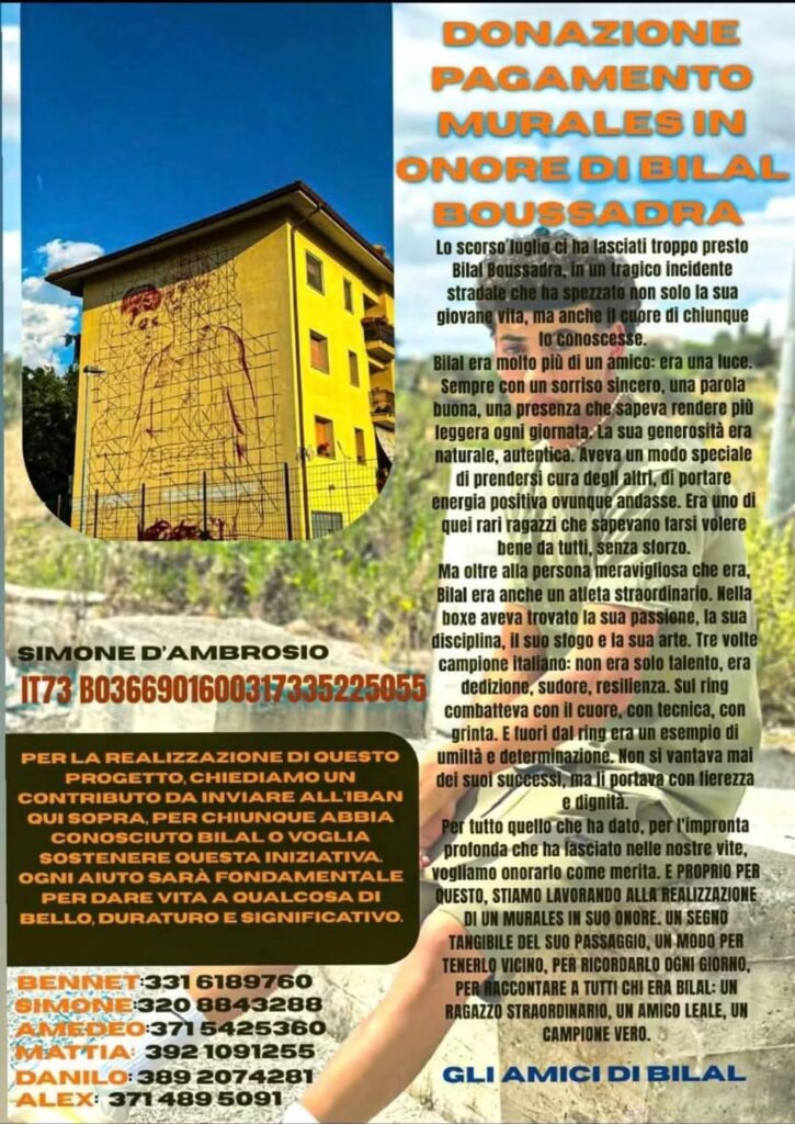 MIRABELLA- Un murales per tenere sempre vicino e ricordare come merita Bilal Boussadra, la giovane promessa della boxe di Mirabella Eclano strappata ai suoi affetti nel tragico incidente avvenuto il 14 luglio di un anno fa e costato la vita a quattro giovanissimi della zona. La bozza del murales che gli amici di Bilal, Bennet, Amedeo, Mattia, Danilo e Alex hanno avviato proprio sul caseggiato giallo della frazione Calore dove abitava il ragazzo, è già visibile ma chiunque vorrà contribuire a realizzarlo, i tanti che anche in tutta la provincia lo conoscevano come promessa della boxe. Parole significative quelle usate dai suoi amici per spiegare l’iniziativa e sollecitare la mobilitazione: “Lo scorso luglio ci ha lasciati troppo presto Bilal Boussadra, in un tragico incidente stradale che ha spezzato non solo la sua giovane vita, ma anche il cuore di chiunque lo conoscesse. Bilal era molto più di un amico: era una luce. Sempre con un sorriso sincero, una parola buona, una presenza che sapeva rendere più leggera ogni giornata. La sua generosità era naturale, autentica: aveva un modo speciale di prendersi cura degli altri, di portare energia positiva ovunque andasse. Era uno di quei rari ragazzi che sapevano farsi volere bene da tutti, senza sforzo. Ma oltre alla persona meravigliosa che era, Bilal era anche un atleta straordinario. Nella