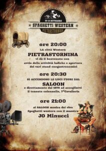 Sarà possibile entrare in un tipico saloon, essere accolti dal tenete colonnello della 7^ cavalleria ed ascoltare la musica dal vivo spaghetti western col maestro Jo Minucci.