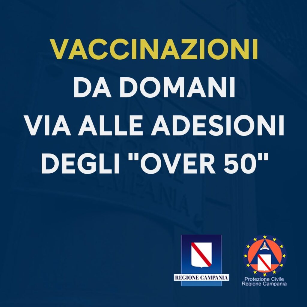 La Regione Campania comunica che da domani mattina sarà aperta la piattaforma per le adesioni al piano vaccinale della fascia di età 50-59 anni.