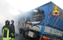 Nella tarda serata di ieri, i Vigili del Fuoco del Distaccamento di Grottaminarda e di Bisaccia, sono dovuti intervenire sull’Autostrada Napoli – Canosa, nel territorio del comune di Vallata, al Km. 107, in direzione Napoli, per un incendio che ha interessato un autotreno, che trasportava generi alimentari. Le due squadre intervenute, sono state supportate da un’autobotte proveniente dalla sede centrale di Avellino, le quali hanno trovato il pesante automezzo avvolto dalle fiamme ed hanno provveduto allo spegnimento ed alla sua messa in sicurezza.