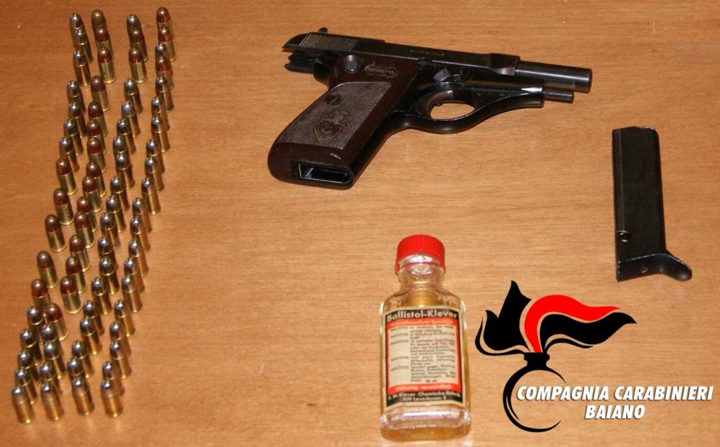 Nel corso delle attività veniva rinvenuta, ben occultata all’ interno di una cantina, al fine di eludere eventuali controlli da parte delle forze di polizia, una pistola cal. 7.65, ben oliata e pronta all’ uso, unitamente a circa 100 munizioni dello stesso calibro, il tutto illecitamente detenuto.