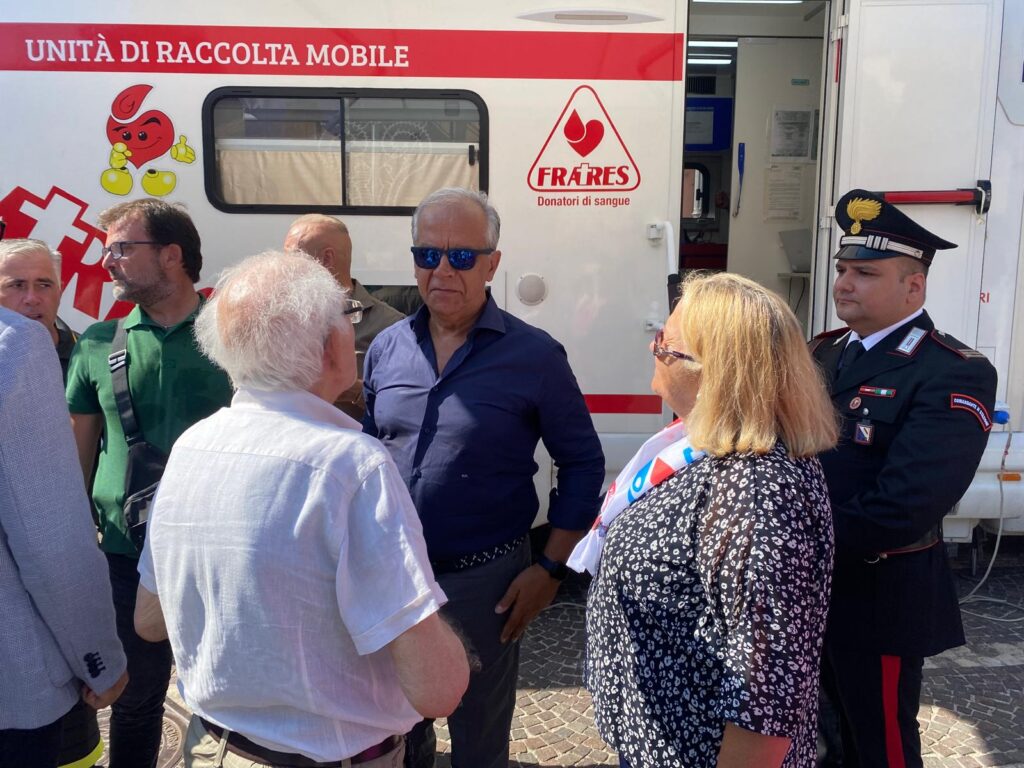 Donazione sangue, il Ministro dell’Interno Matteo Piantedosi dà l’esempio nella sua Pietrastornina. Ritorno a casa questa mattina per il Capo del Viminale, reduce dal Meeting di Rimini, per partecipare all’iniziativa del Comando dei Vigili del Fuoco di Avellino e del Circolo Socio Culturale Petra Strumilia in collaborazione con l’Associazione Nazionale del Corpo Sezione di Avellino e con l’associazione Donatori Nati. Appuntamento a cui l’esponente del Governo Meloni non ha voluto rinunciare, donando lui stesso il sangue una volta a bordo dell’autoemoteca della Fratres a Piazza V. Veneto. “Quello di oggi è un evento importante che mette insieme le due colonne portanti del Ministero dell’Interno, ovvero la Polizia di Stato e i Vigili del Fuoco” sottolinea Piantedosi accompagnato – tra gli altri – dal Presidente nazionale dell’associazione DonatoriNati Claudio Saltari.