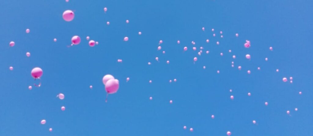 A chiudere la giornata di mobilitazione e sensibilizzazione contro il cancro, il consueto lancio di palloncini rosa per ricordare chi non c’è più.
