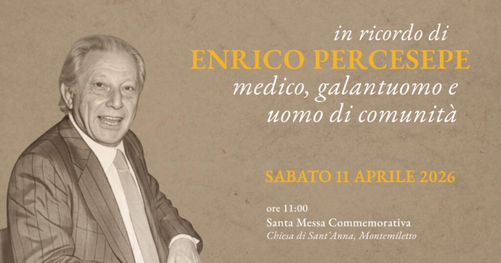 Per ricordarlo, sabato 11 aprile 2026 alle ore 11, si terrà a Montemiletto l’iniziativa “In ricordo di Enrico Percesepe, medico, galantuomo e uomo di comunità”, con il patrocinio dell’Amministrazione comunale. Il programma prevede una Santa Messa commemorativa nella chiesa di Sant’Anna, seguita da un brindisi nel chiostro del Comune, come occasione per ritrovarsi e custodirne insieme la memoria.