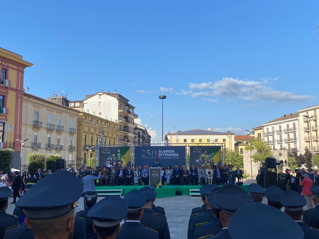 Un compleanno speciale per la Guardia di Finanza che ha festeggiato ad Avellino a piazza Libertà i 250 anni dalla Fondazione del Corpo. Festeggiamenti che in realtà sono cominciati già lo scorso marzo con l’intitolazione della Sala Conferenze al Maestro Capitano Antonio D’Elia di Mirabella Eclano, Direttore della Banda del Corpo della Guardia di Finanza per ben 25 anni. A seguire il torneo interforze di calcio a 5 a cui ha preso parte anche l’Ordine dei Giornalisti. Ancora, l’inaugurazione della mostra “250 Anni – Tradizione e Futuro” a Palazzo Caracciolo.