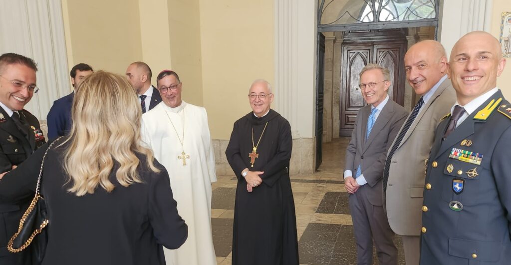 L’abate Riccardo Guariglia ha chiuso così il suo messaggio in apertura della liturgia nel giorno della celebrazione di San Guglielmo, fondatore del Monastero di Montevergine e Santo Patrono di Irpinia. In apertura del suo messaggio l’abate ha voluto salutare l’invitato speciale della celebrazione, l’abate Ignasi Fossas i Colet, alla guida della Congregazione Benedettina, ricordando anche l’eredita’ sempre viva di San Guglielmo: L’abate Guariglia ha ricordato quella che e’ la “sua eredità, ovvero questa realtà monastica che da nove secoli abita questo mondo e si riconoscono le genti dell’ Irpinia della Campania e di tanti territoriol. La festa del patrono è festa di famiglia e per questo ho desiderato che l’invitato speciale di quest’anno fosse il nuovo Abate della Congregazione Benedettina Sublacense-Cassinese, l’abate presidente Ignasi M. Fossas i Colet a cui apparteniamo anche noi monaci di questo convento. Grazie, dunque, al reverendissimo padre Ignasi Fossas I Colet che presiede oggi alla nostra famiglia e alle nostre celebrazioni. L’abate presidente proviene dalla Spagna e apparteneva al monastero di Montserrat in Catalogna, dove l’assemblea di tutti gli abati del mondo lo ha eletto all’ incarico circa un anno fa. Da quel momento ha preso dimora a Roma dove già era stato in precedenza per i suoi studi in liturgia e in archivistica e dove aveva anche insegnato. Anche il monastero di Montserrat e’ abbarbicato sul fianco di una montagna, alla comunità dei benedettini il compito di custodire e offrire alla venerazione dei fedeli l’immagine di una Madonna tanto cara, mi permetta di rallegrarmi, attraverso di lei con tutta la comunita’ di Montserrat che sta celebrando il millennio della sua fondazione”. Un saluto anche al colonnello Domenico Albanese, ricordando il legame dell’Arma con il monastero, con una stazione che opera da circa un secolo. A margine della liturgia all’abate e’ stato chiesto anche della crisi che vive Il Comune di Avellino, se tra le crisi per cui va elevata la preghiera al patrono d’Irpinia possa esserci anche questa: “Preghiamo San Guglielmo, finché riporti veramente pace in tutte quelle situazioni. non belle che oggi viviamo nella nostra vita”. E sullo spopolamento e la fuga dei giovani ha rilanciato: “non tocca tanto ai giovani di fare qualcosa, ma tocca a noi un poco più adulti. Cercare di non far fuggire i giovani dalle nostre Terre”. Presenti alla celebrazione il prefetto di Avellino Rossana Riflesso, il Procuratore della Repubblica di Avellino Domenico Airoma, il presidente del Tribunale di Avellino Francesca Spena, il deputato Michele Gubitosa, il presidente della Provincia Rizieri Rino Buonopane, l’ ex sottosegretario Carlo Sibilia, una folta delegazione di sindaci tra i quali il Sindaco di Ospedaletto d’Alpinolo, il professore Luigi Marciano, che a nome della sua comunità ha donato al santuario l’olio per alimentare la lampada che arde davanti all’urna del santo eremita. A chiudere la celebrazione proprio gli interventi del presidente della Provincia e del sindaco di Ospedaletto.