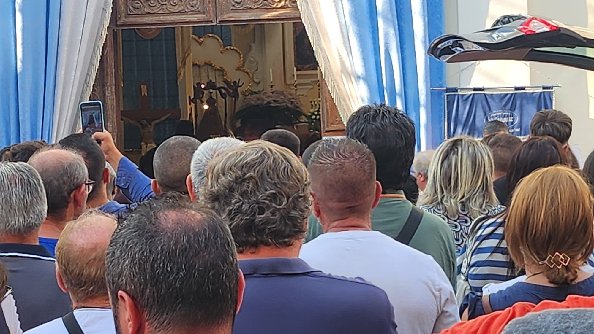 E’ un passo della preghiera finale che nella sua omelia Don Vito Cucca ha voluto rivolgere per ricordare come l’eredità di Domenico Romano, il suo esempio, sopravviveranno alla morte. In una chiesa di Maria Ss della Carità addobbata a festa, quella prevista nei prossimi giorni, oggi c’è l’intero Vallo di Lauro a piangere il quarantottenne vittima del frontale lungo la Ss403. All’esterno la piazza è gremita, ed esplode in un applauso quando il feretro esce dalla Chiesa, portato in spalla dai familiari del quarantottenne, stremati da cinque giorni di dolore per una vita spezzata senza motivo. Ai familiari Don Vito ha affidato un messaggio importante: “lo spero nel Signore, l’anima mia spera nella sua parola, ($al 129, 5) Con il Salmista ti sussurriamo queste tue parole. Signore, sostieni ora la speranza di Sara, Francesca e Leonardo. Perché è su di te che ora essi si aggrappano, con la cara mamma Emilia, i fratelli Sabato, Vincenzo, Benvenuta, Giuseppina, Darioe Antonella, i suoceri Antonio e Filomena” e ha aggiunto: “Tu, sostegno dell’orfano e della vedova, non dimenticare le lacrime di questi nostri cari ma resta sempre al loro fianco, confortali, e accompagnali”.