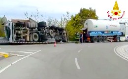VIDEO/ Torella dei Lombardi: si ribalta un autoarticolato