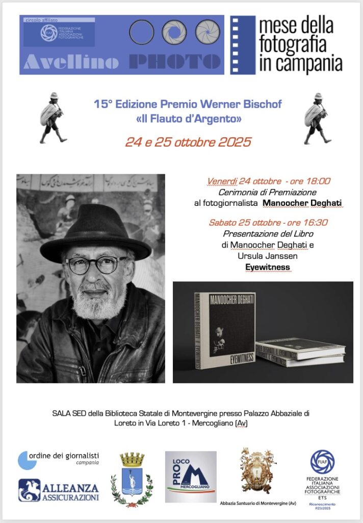 Avellino, ottobre 2025 – Torna uno degli appuntamenti più attesi del panorama fotografico italiano: la XV edizione del Premio “Werner Bischof – Il Flauto d’Argento”, prestigioso riconoscimento dedicato alla fotografia d’autore, sarà conferita al fotoreporter iraniano-francese Manoocher Deghati, figura di rilievo internazionale nel campo del fotogiornalismo contemporaneo.