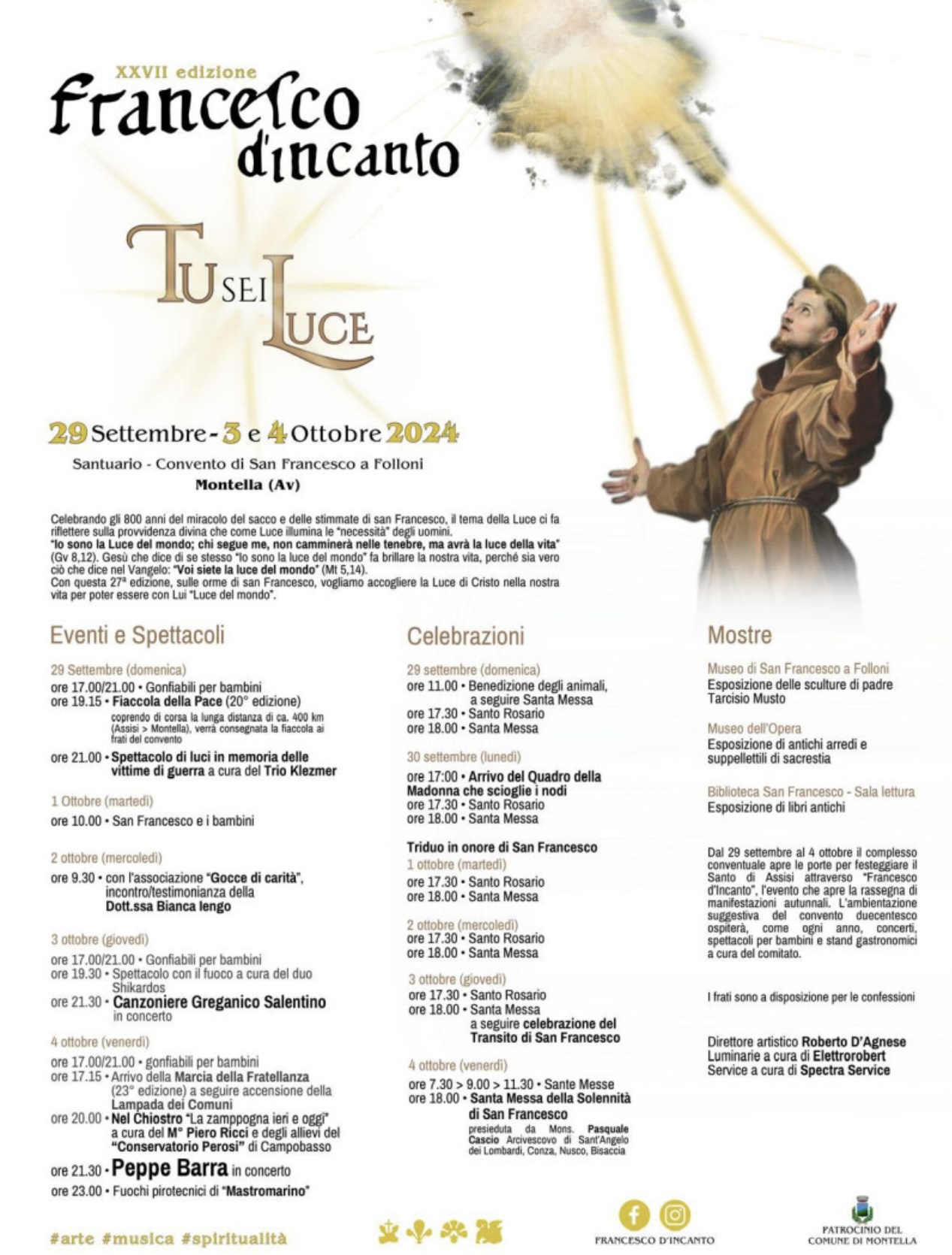 XXVII edizione Francesco D’Incanto, “Tu sei Luce”: il tema di quest’anno per festeggiare il Santo di Assisi